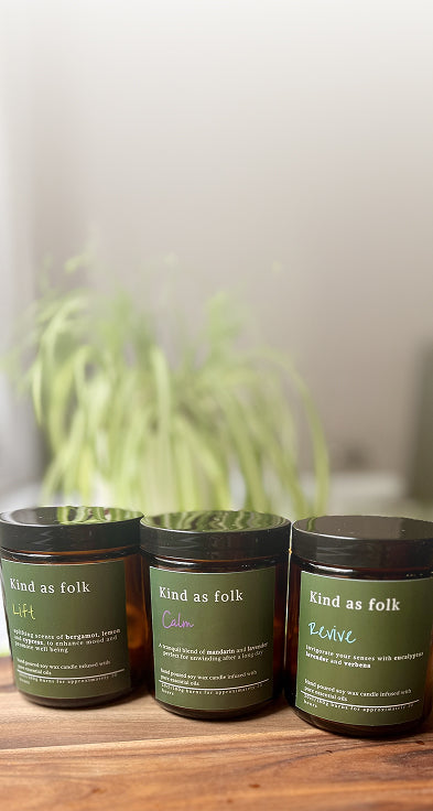 At Kind as Folk, we believe that every moment deserves a touch of warmth and light. Our handcrafted candles are designed to elevate your space and soothe your senses, using only the finest natural ingredients. Each scent tells a story, inviting you to unwind and embrace the cozy atmosphere they create. Discover the perfect candle to complement your home and enhance your daily rituals.